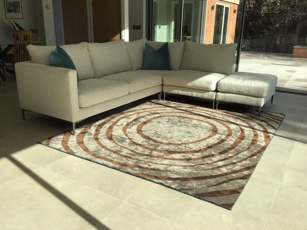 I am delighted with my new rug. The modern design fit’s in perfectly. I really like the ‘shading’ in the background which gives the rug added interest and character.
