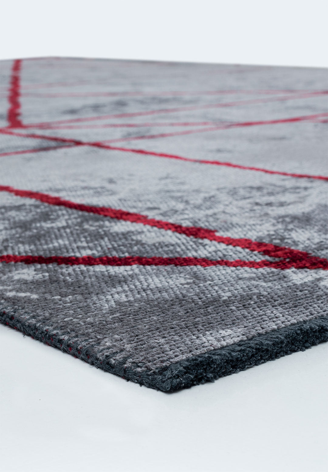 Grid Light Grey - Red Rug